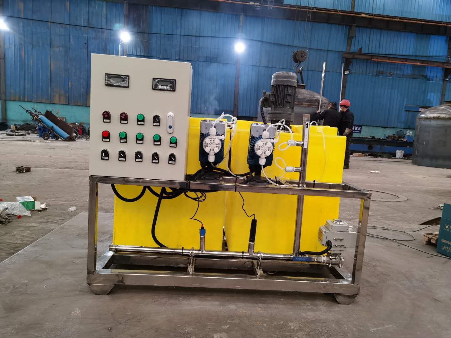 全自動(dòng)加藥裝置是循環(huán)冷卻水常用的設(shè)備,也用于河水凈化,污水過濾器處理,中水回用裝置,一般用在機(jī)械過濾器,石英砂過濾器,多介質(zhì)過濾器前面,或者沉淀池里做為預(yù)處理,很多也用在反滲透超濾加阻垢劑等等,用途廣泛。