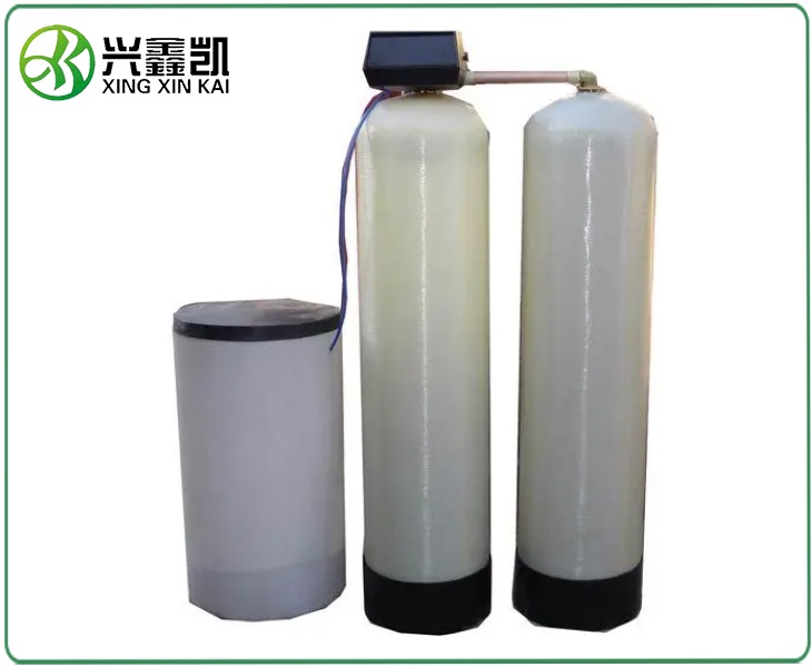 再生時要求先對樹脂層進行反洗,以去除上層樹脂可能截流的懸浮物等雜質(zhì),同時起到松動樹脂層的作用。然后從樹脂罐上部進鹽,再生廢液通過下排排出。進鹽過程中,鹽水中高濃度的Na+把失效樹脂吸附的Ca2+ Mg2+離子置換下來,與再生廢液一同排出,達到活化樹脂的目的。吸鹽結(jié)束后,再以約一到兩倍樹脂體積的清水把樹脂層中的濃鹽水置換出來。最后進行正洗工藝,徹底清除樹脂層中殘留的鹽液。再生過程中濃鹽液通過噴射器自動吸入,并自動混合到預(yù)定濃度后送入交換器,再生劑濃度可通過閥門自由調(diào)節(jié)。